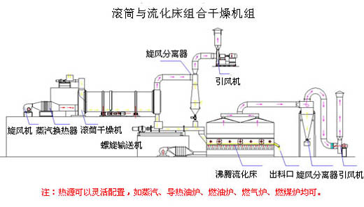 設備原理: 干燥時(shí),濕物料通過(guò)加料器進(jìn)入滾筒干燥機內,被機內的操板不斷翻動(dòng)、打散,并與熱空氣充分地接觸,物料中的水分被快速蒸發(fā),使較粘的物料變成流動(dòng)性較好的松散物料。物料通過(guò)輸料裝置進(jìn)入沸騰流化床中。在流化床中,物料受到較長(cháng)時(shí)間的流化干燥,從而保證了物料的干燥質(zhì)量。